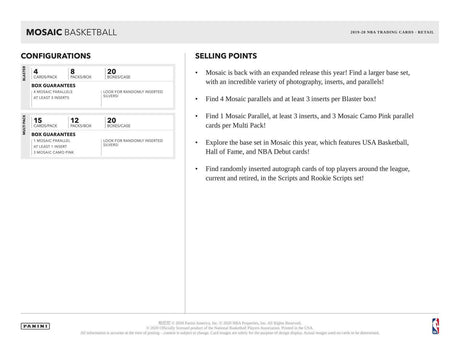 2019/20 Panini Mosaic Basketball Cello 12-Pack Box (Pink Camo Prizms)