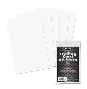 The Trading Card Dividers are made from a full 30 point white high density Polyethylene Plastic (archival quality), with write- on index tab, and are precision cut to size.
