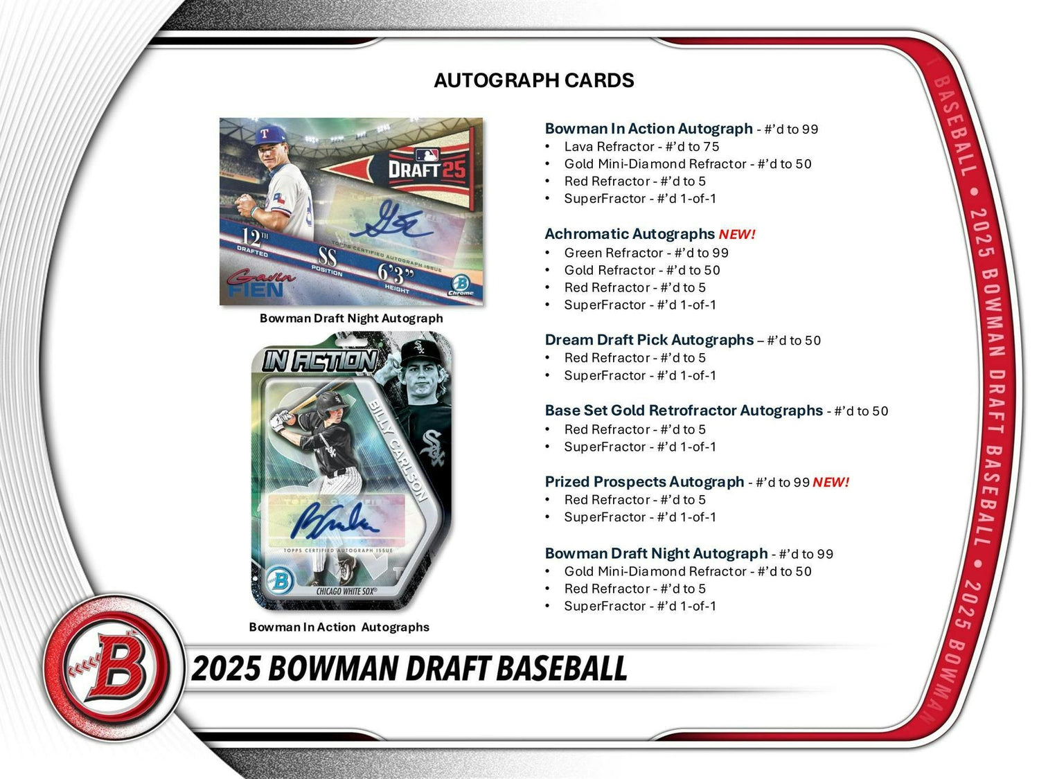 The next chapter of baseball history begins with 2025 Bowman Draft Baseball featuring the top newly drafted prospects from the 2025 MLB Draft!