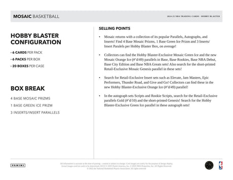 2024/25 Panini Mosaic Basketball 6-Pack Hobby Blaster 20-Box Case