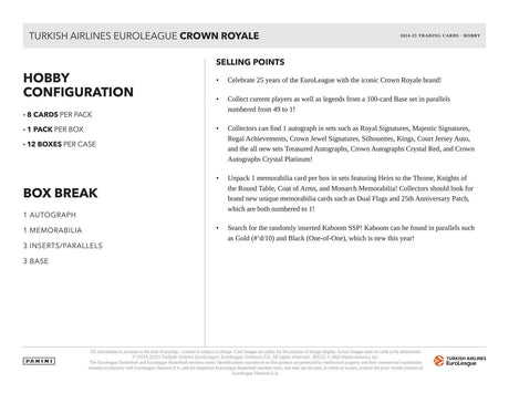 2024/25 Panini Turkish Airlines Euroleague Crown Royale Basketball Hobby Box