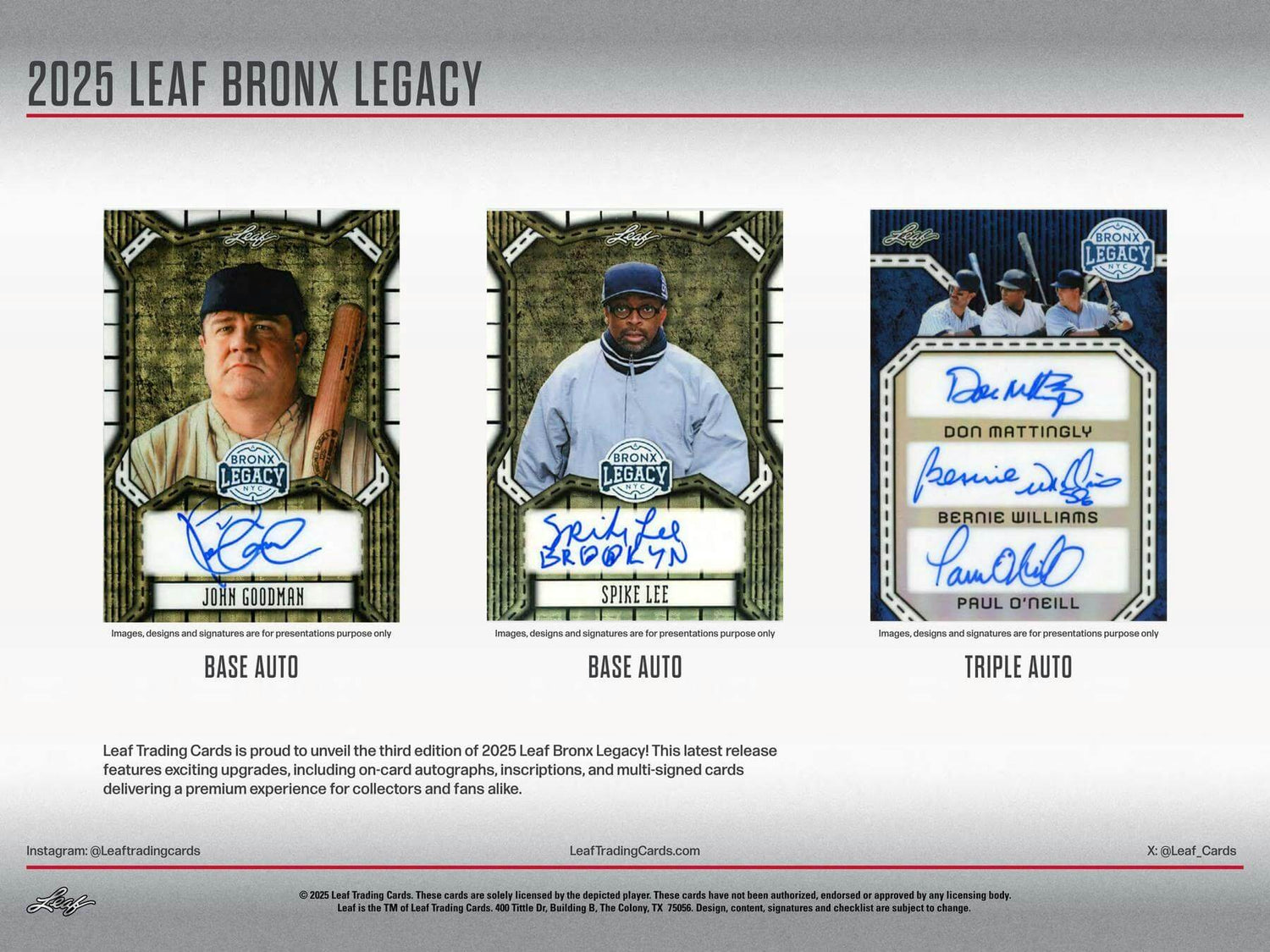 Leaf Trading Cards is proud to unveil the third edition of 2025 Leaf Bronx Legacy! This latest release features exciting upgrades, including on-card autographs, inscriptions, and multi-signed cards delivering a premium experience for collectors and fans alike.