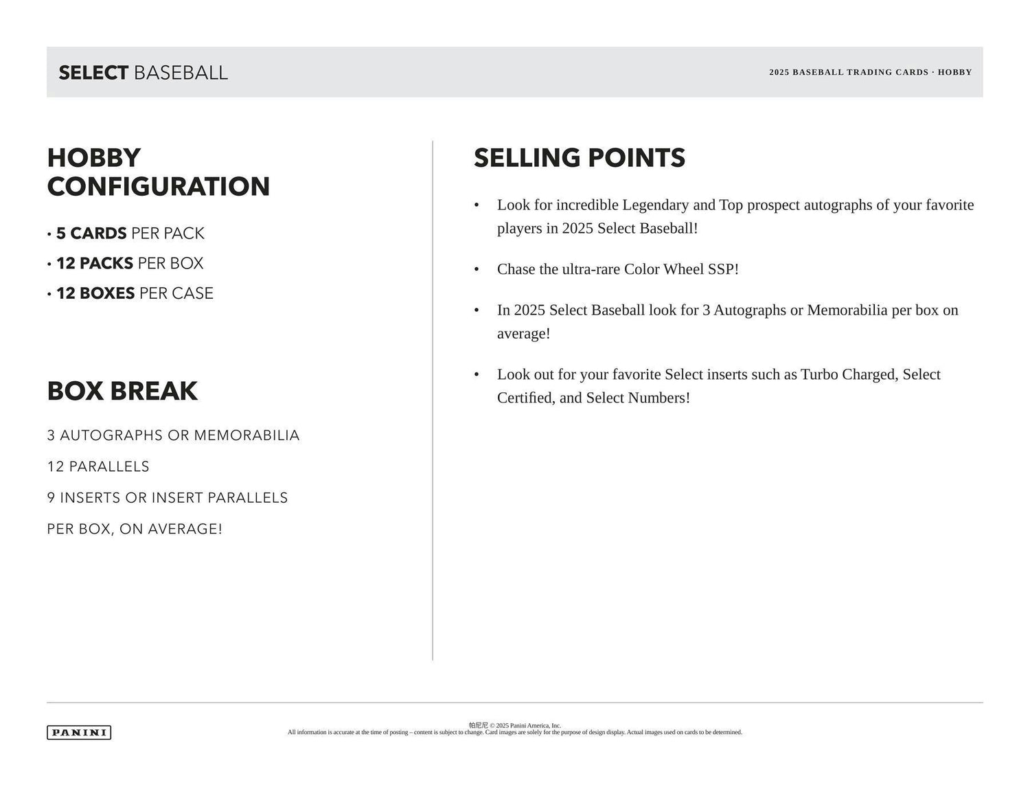 In 2025 Select Baseball look for 3 Autographs or Memorabilia per box on average!